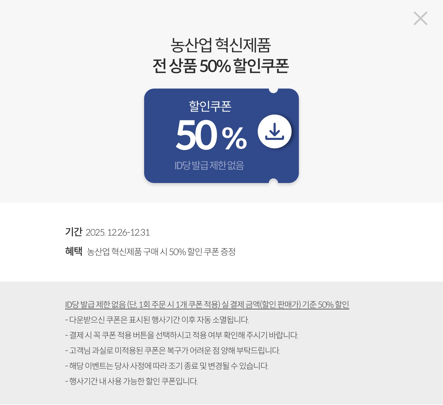 전 상품 50% 할인쿠폰