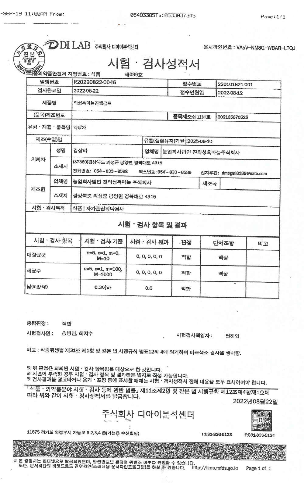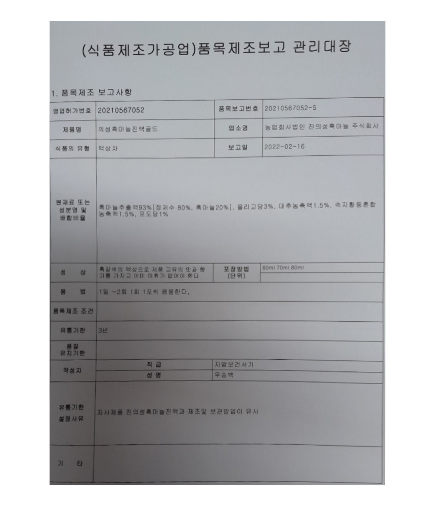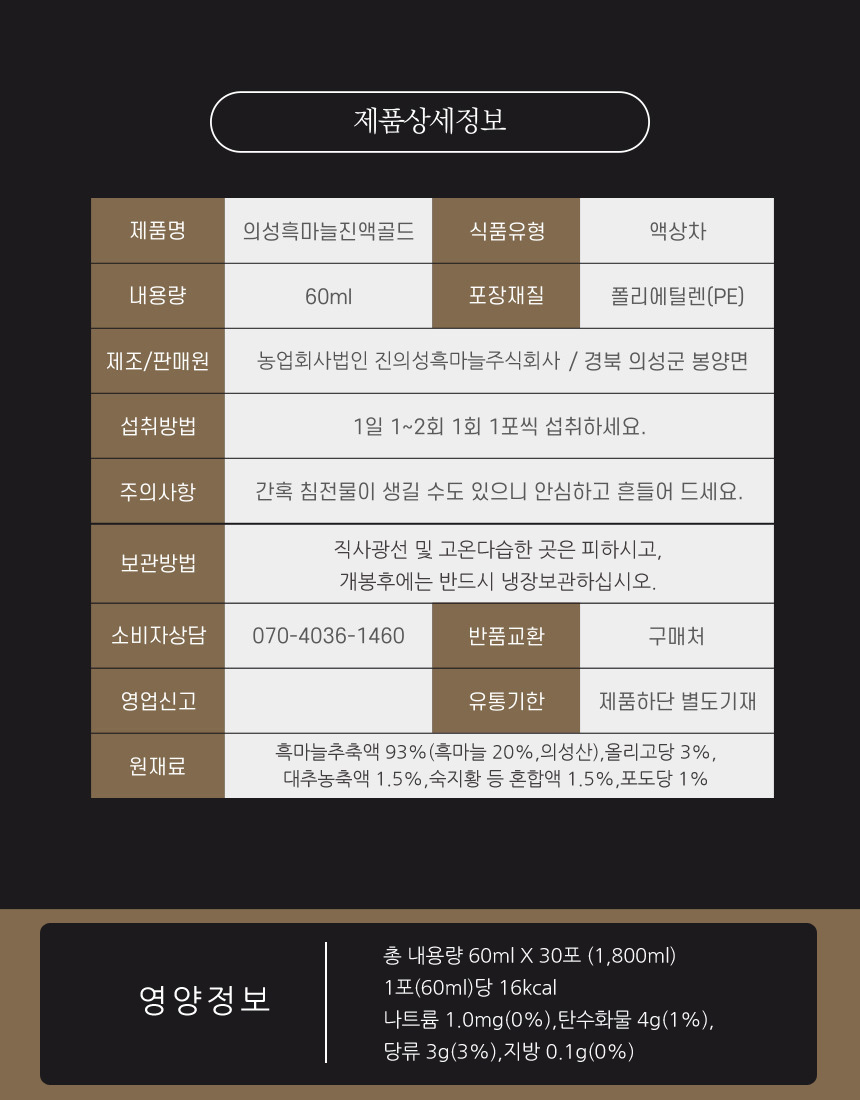 진 의성 흑마늘진액 60ml 30포 흑마늘추출액 93%