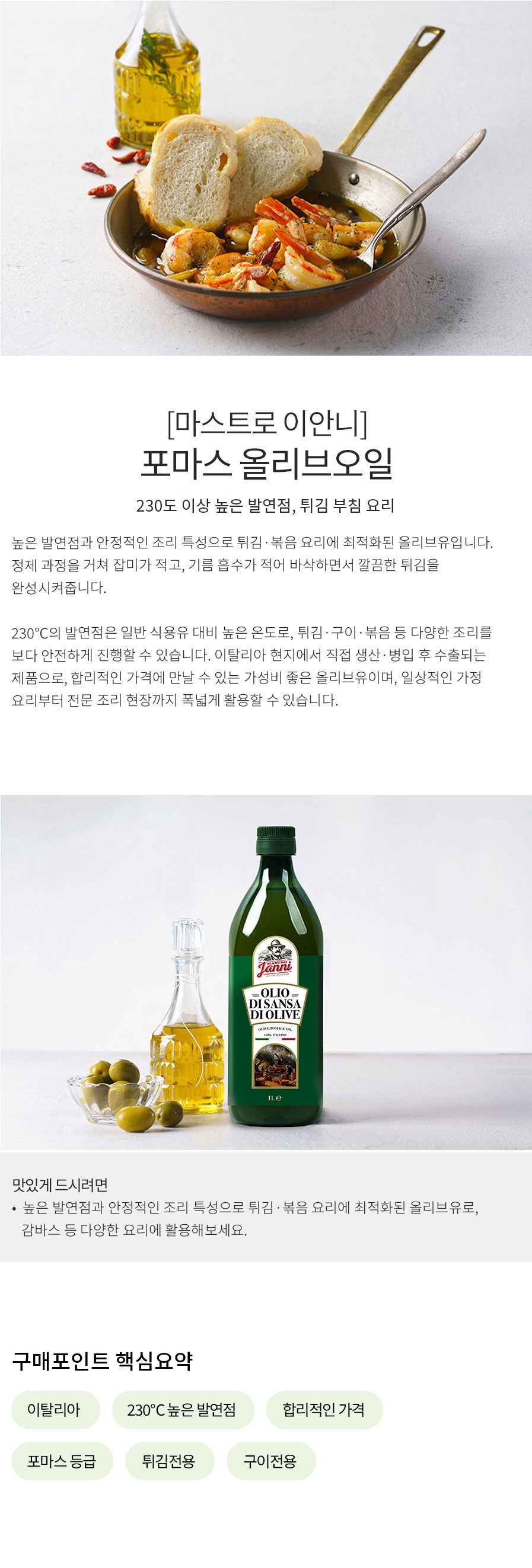 좋은 올리브유로 요리가 담백하고 더 맛있어요