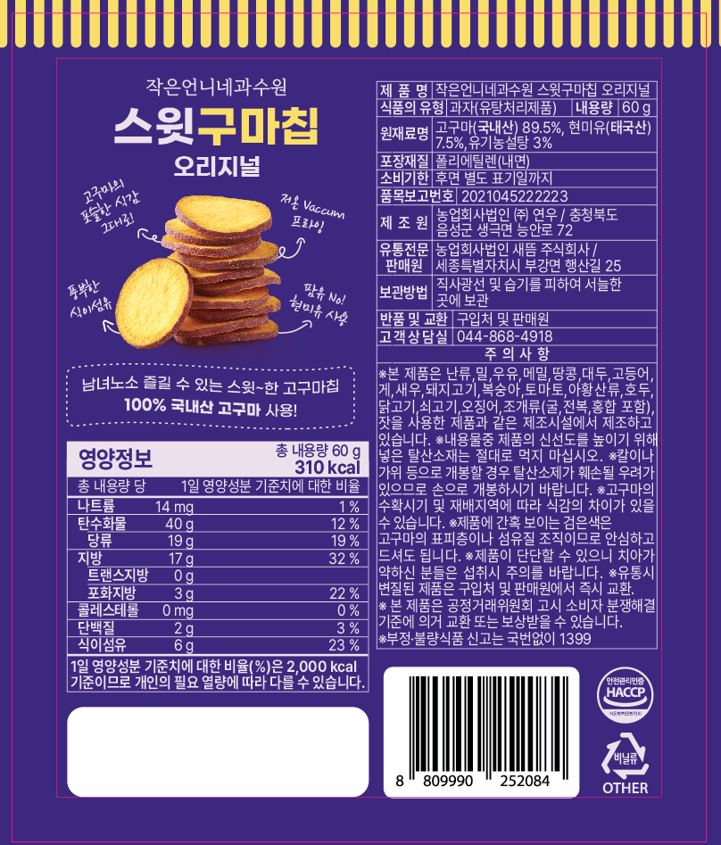 현미유로 진공 저온 프라잉해 바삭하고 포슬한 고구마칩