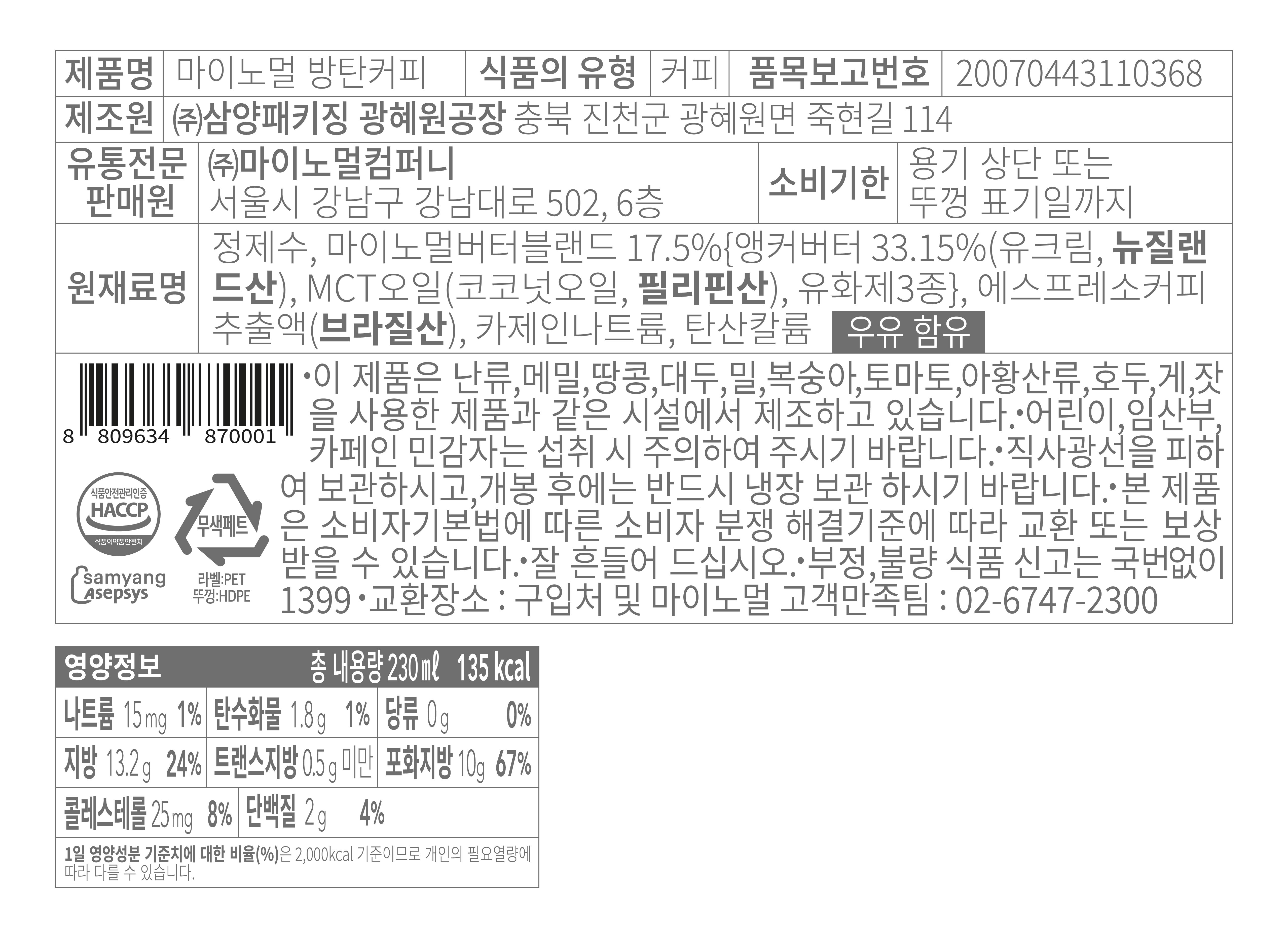 마이노멀 방탄커피 6개입 (230ml x 6개)