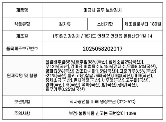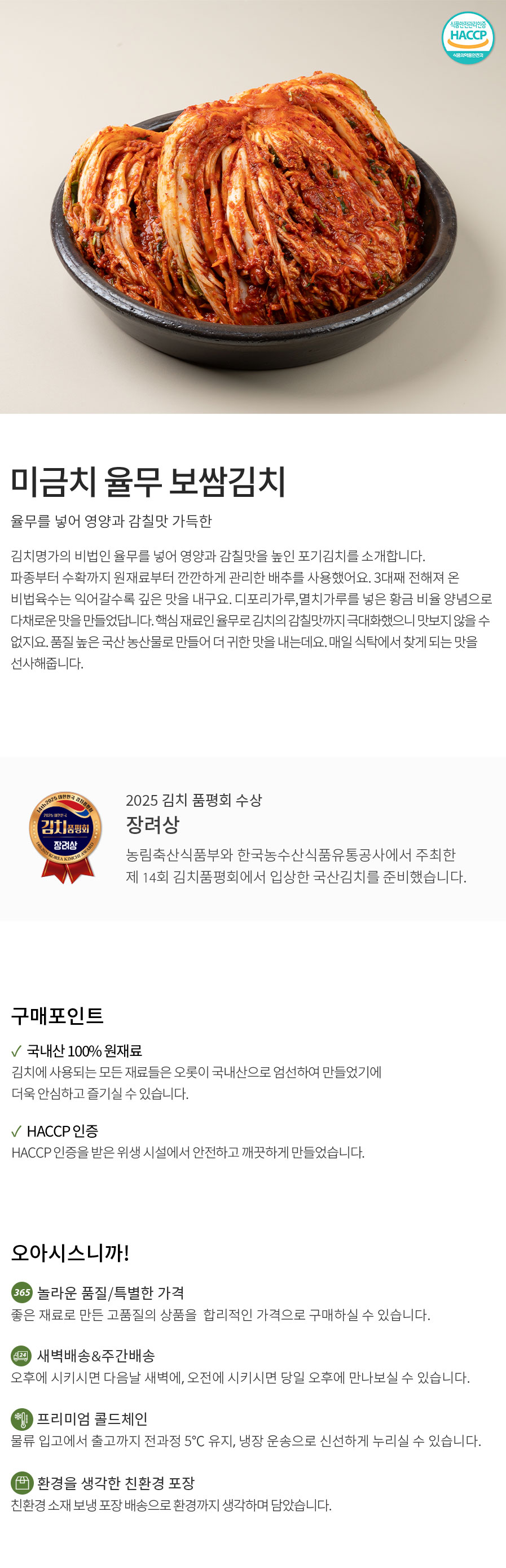 • [품평회 장려상] 미금치 율무 보쌈김치 (3kg)