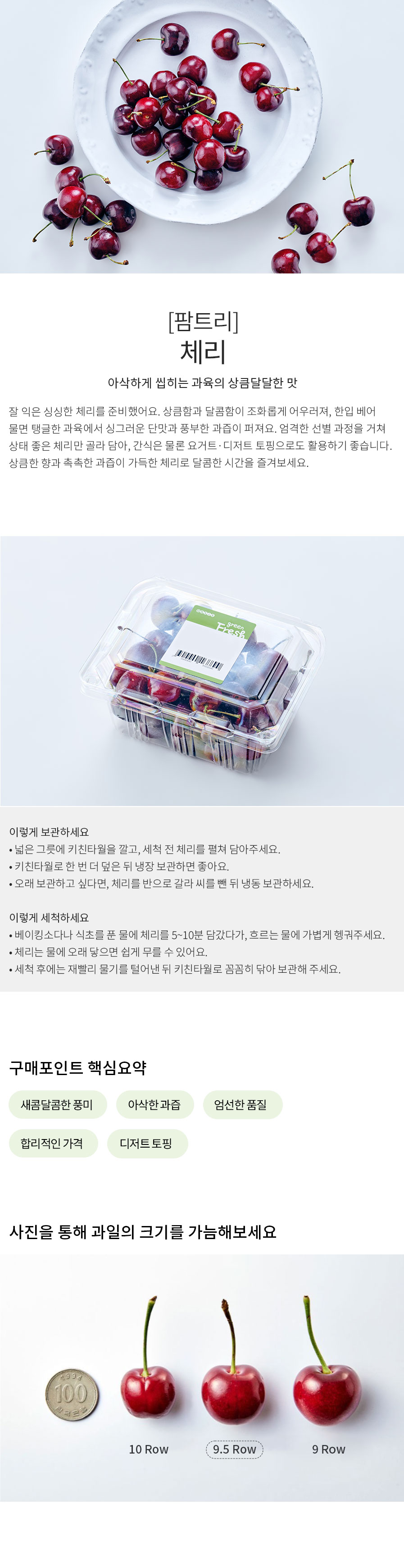 • 알이 큰 칠레산 생체리, 9.5Row