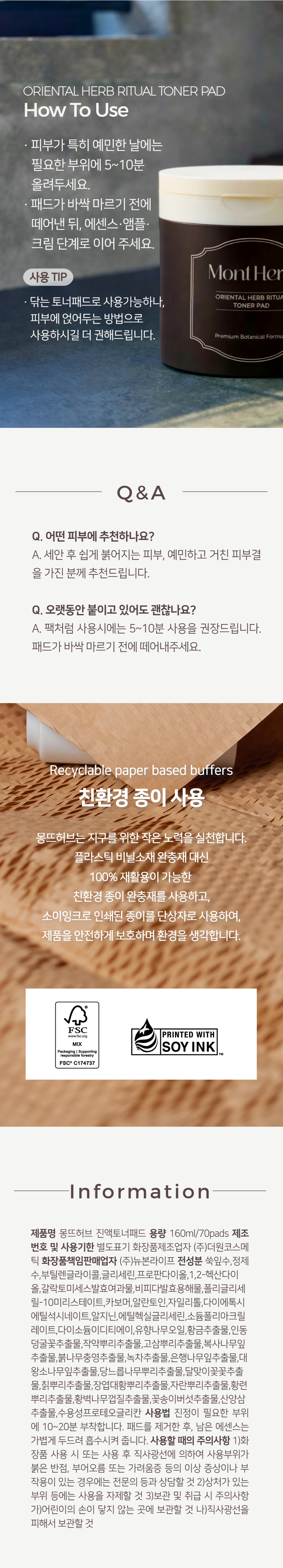 • 몽뜨허브 진액토너패드 2pads x 10개