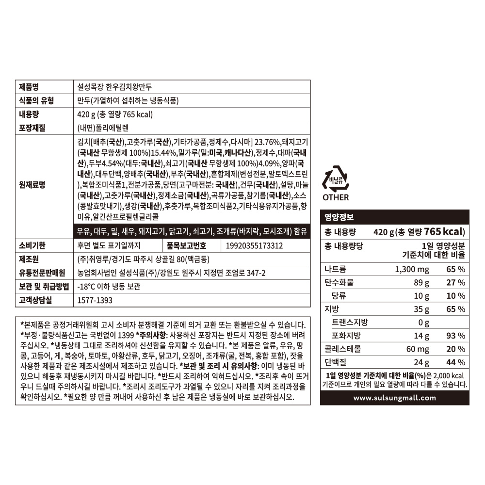 • 한우 김치왕만두 (420g)