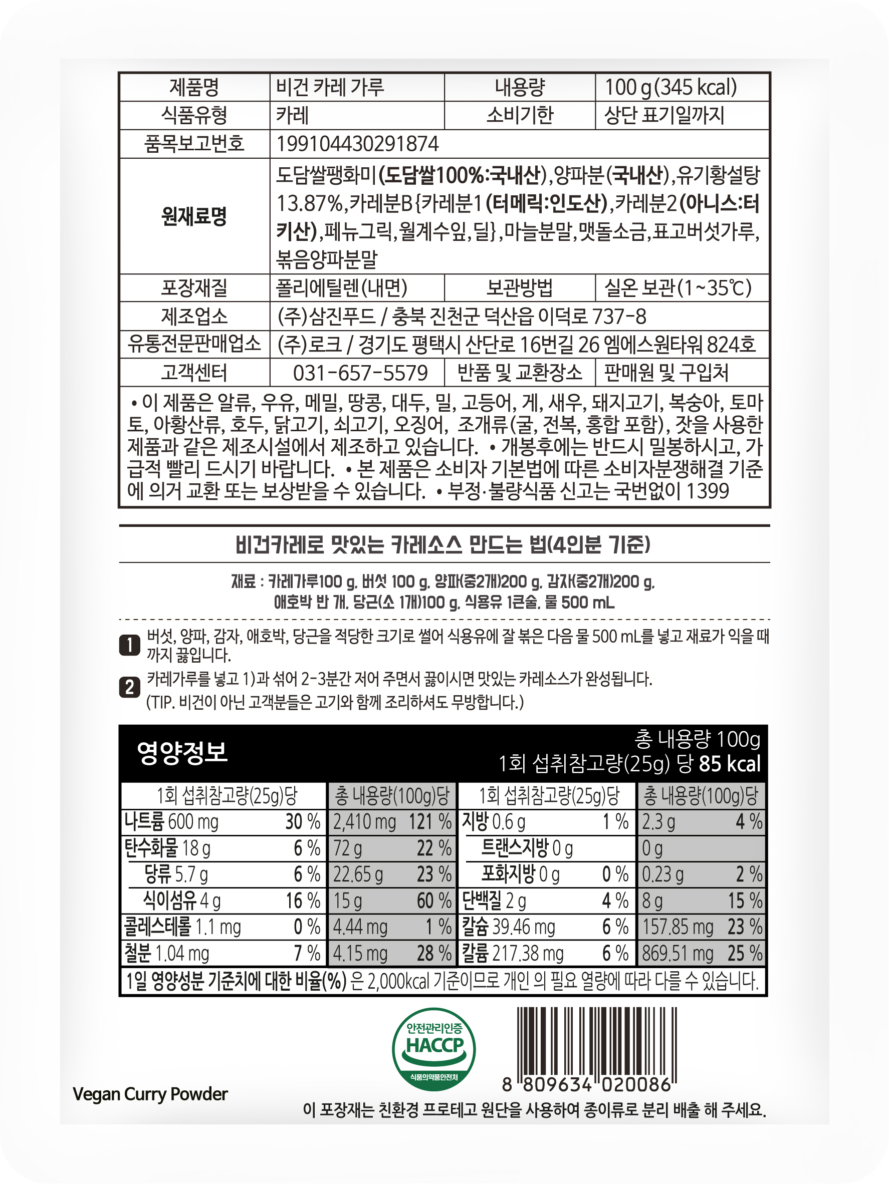 글루텐프리 비건카레 4인분 도담쌀로 만든 건강한 비건카레