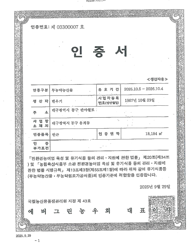 친환경 무농약 연근채