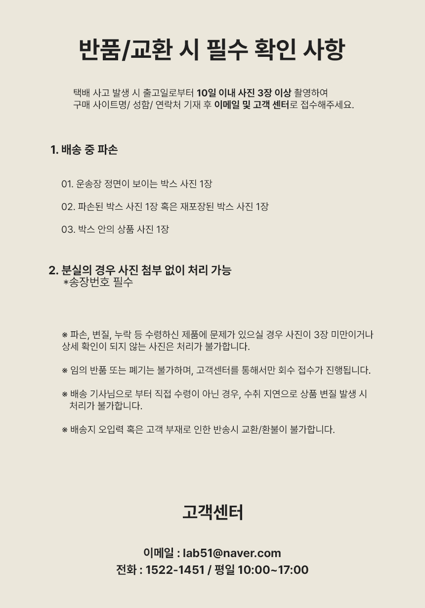 가격, 판매자, 교환/환불 및 배송 등에 해당 상품 자체와 관련없는 문의는 고객센터 내 1:1 문의하기를 이용하세요.