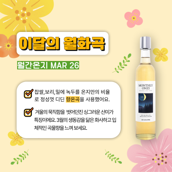 정제수, 찹쌀(국내산), 월화곡(자가누룩:국내산)