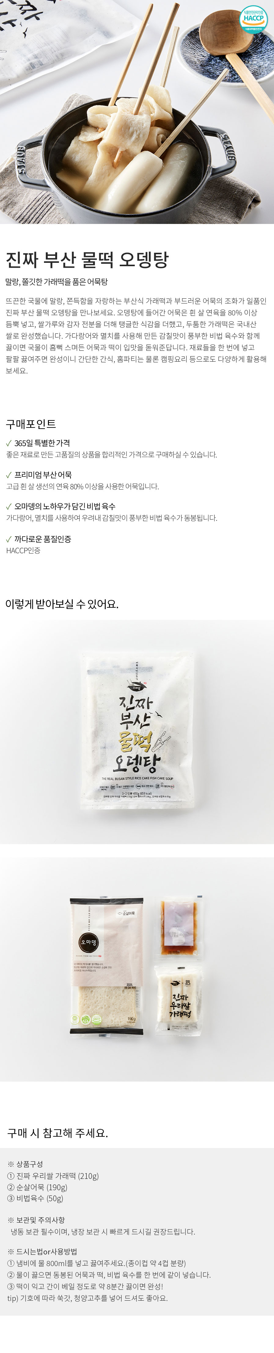 구성 : ① 진짜 우리쌀 가래떡(180g), ② 순살어묵(190g), ③ 미니 비법육수(50g)